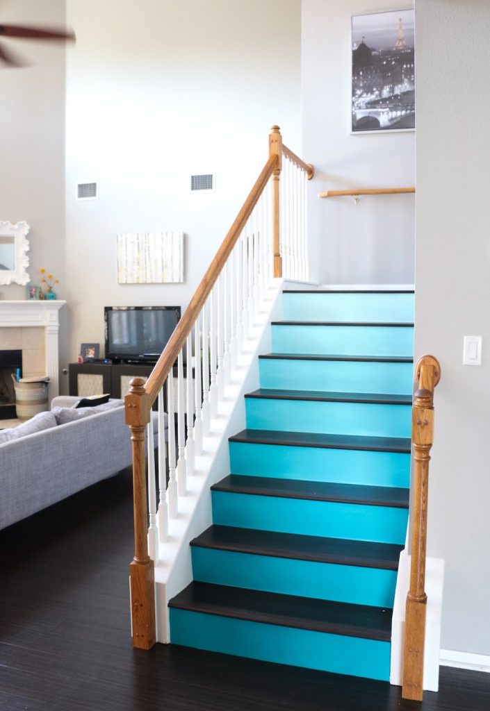 Pour donner un peu de cachet à un intérieur par la couleur, rien de mieux qu’un effet ombré sur un escalier. Associé à un joli papier peint à motif, on peut vite obtenir un rendu un peu gipsy assez sympa.