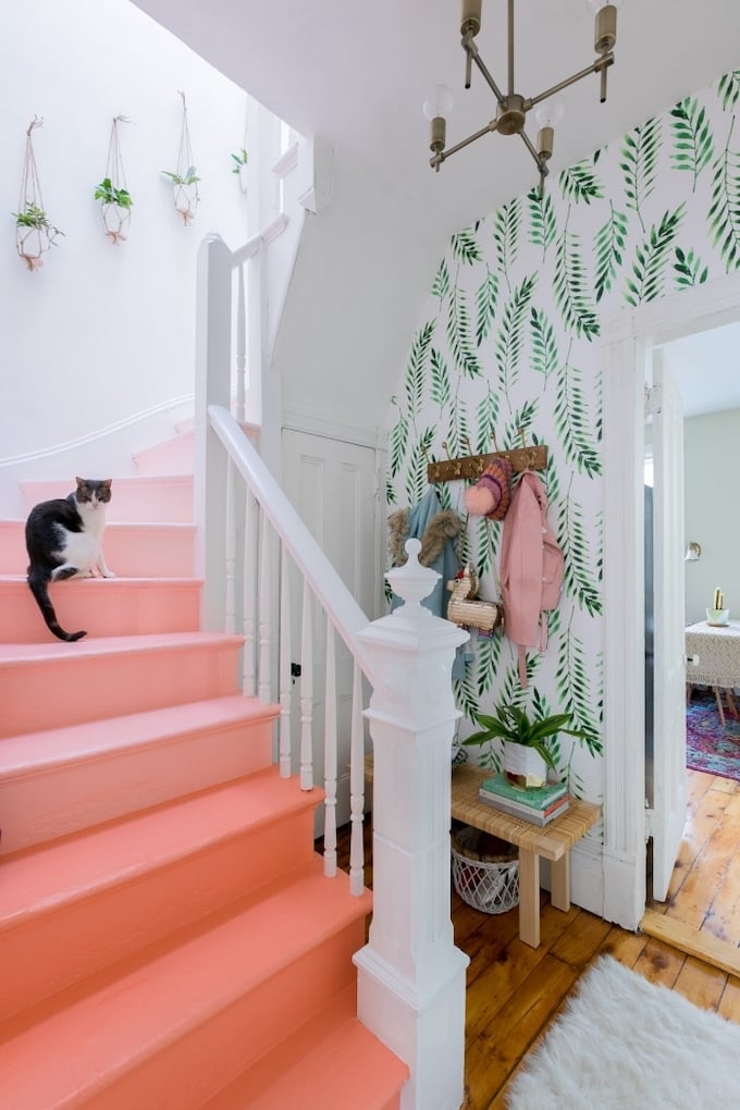 Si vous êtes locataire, c’est une des solutions les plus pratiques pour rendre vos escaliers originaux sans les métamorphoser de manière radicale ! Quelques plantes vertes, de jolis caches pots et le tour est joué.
