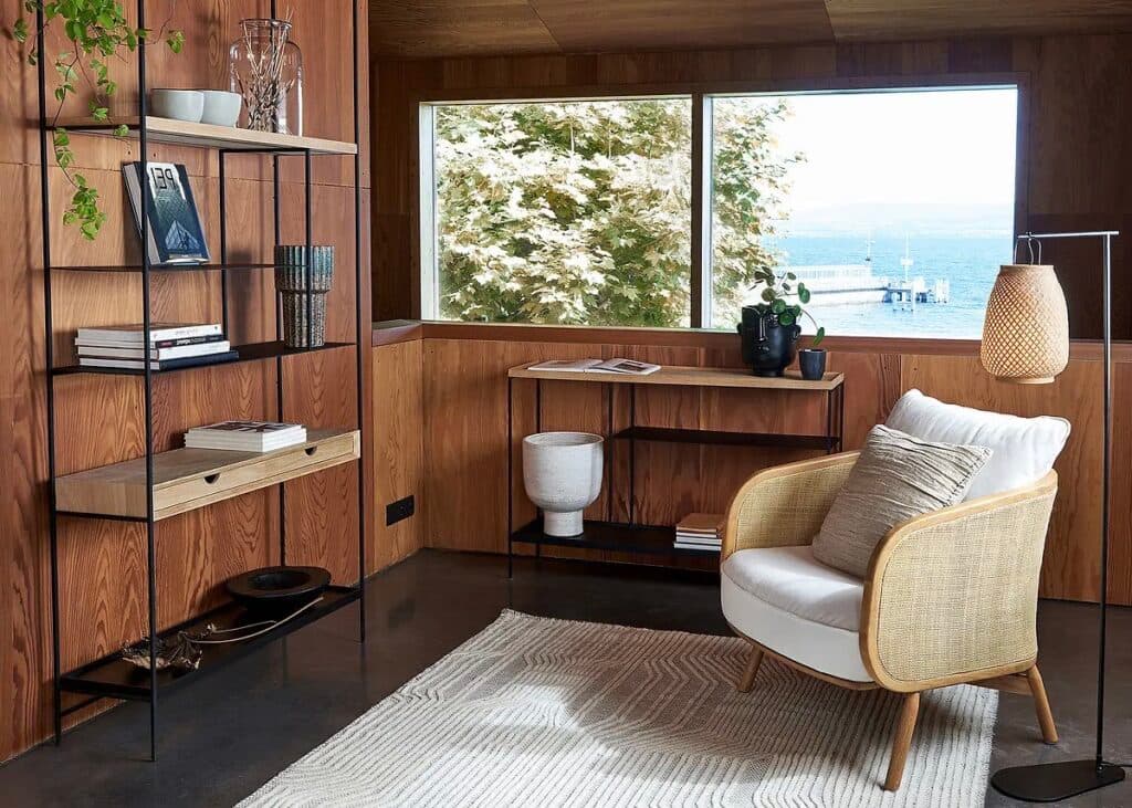 J’aime particulièrement cette création La Redoute qui mêle étagères en cannage et en acier. Ainsi vous pourrez jouer sur le côté rétro du tissage en rotin en le soulignant. Ou au contraire appréciez la froideur et l’aspect brut de l’acier pour un intérieur plus industriel et une ambiance loft. En fonction de votre parti pris, déposez des objets décoratifs sur les différentes étagères et incarnez le style déco de votre choix.