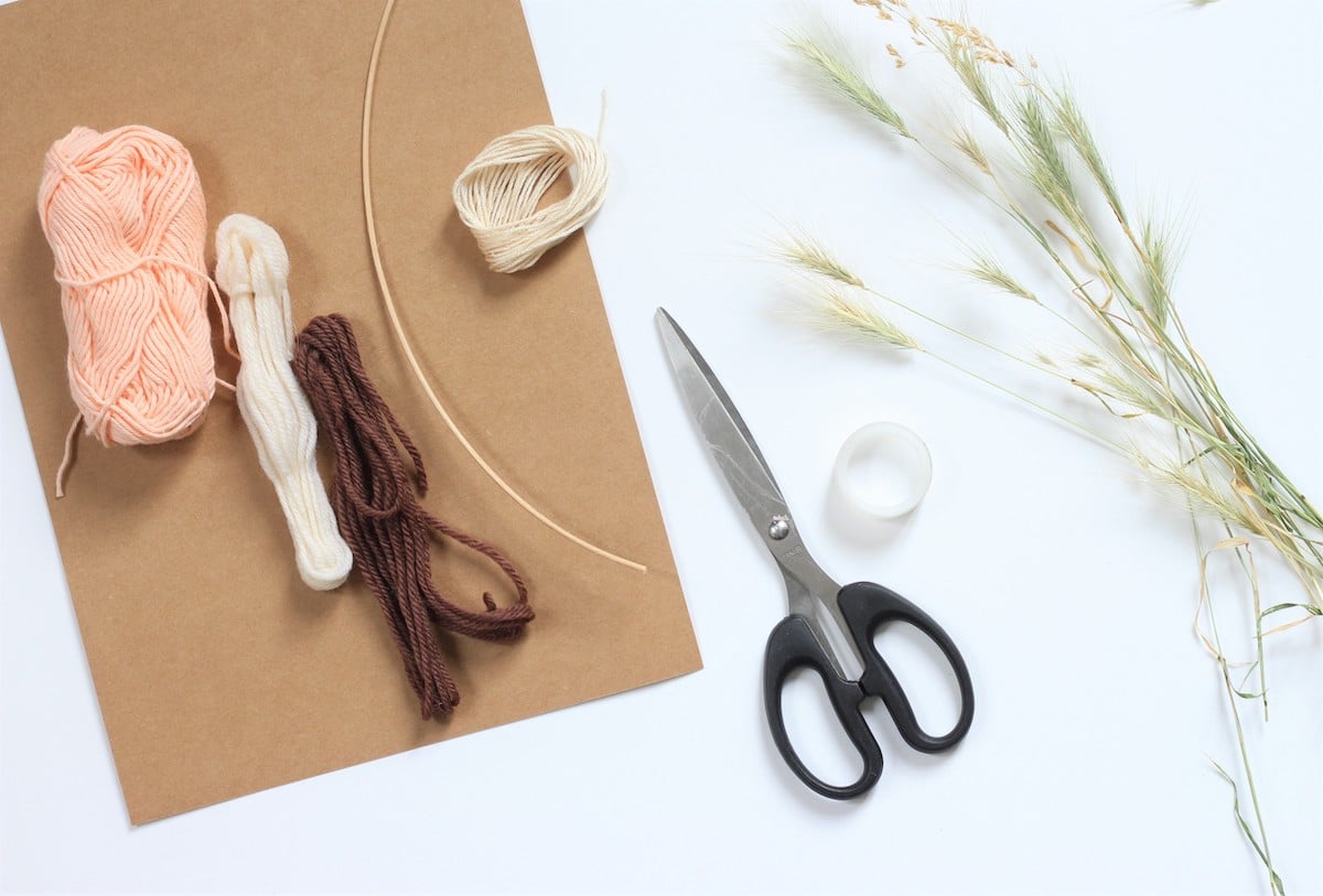 - Des fils de coton ou de laine de différents coloris. J’ai pour ma part choisi les couleurs saumon, écru, marron.