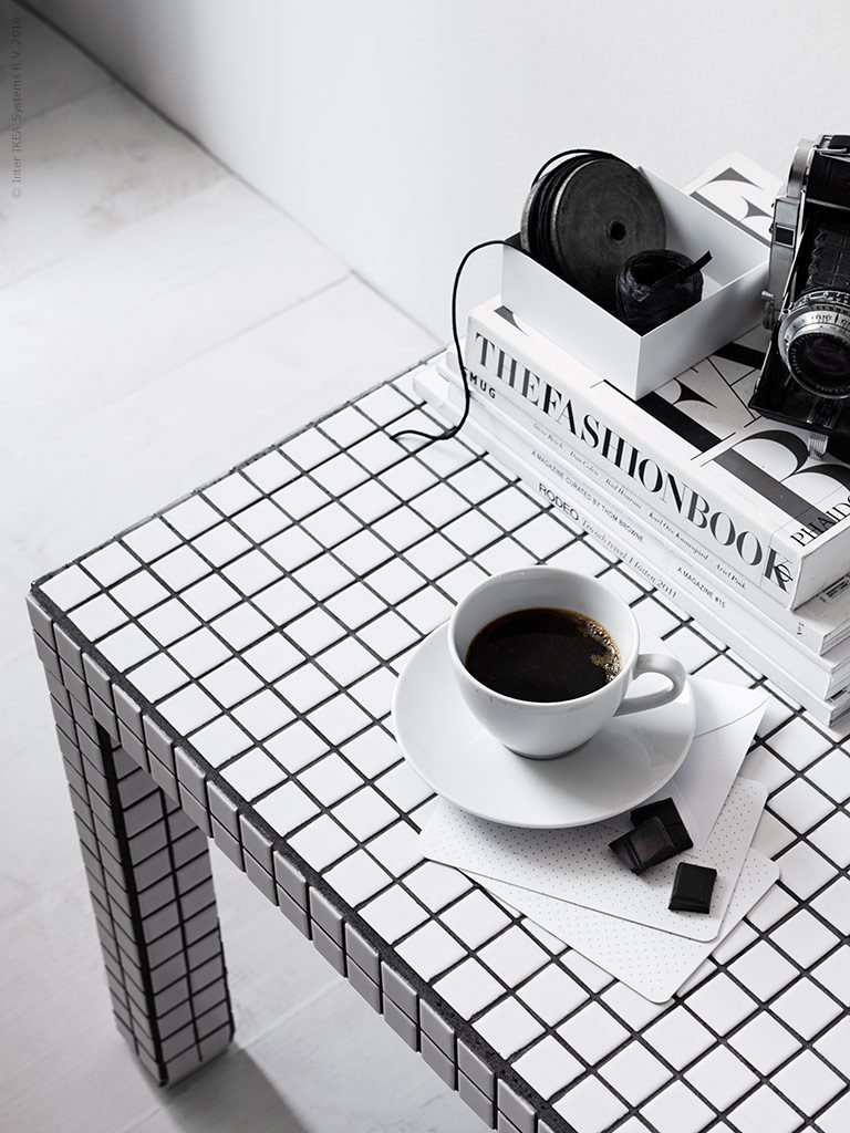 Pour ce Lack IKEA hack, Pella Hedeby, dont le travail a été photographié par Ragnar Omarsson, nous propose une version graphique en mosaïque de la table.