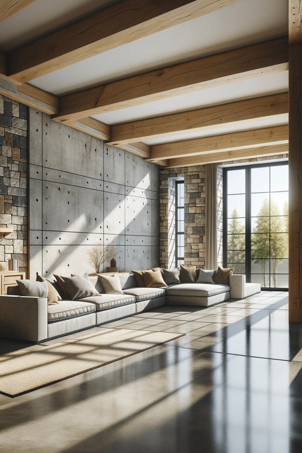 Le béton, souvent considéré comme un matériau froid et industriel, est revisité sous un jour nouveau. Sa texture rugueuse et sa teinte neutre en font un choix parfait pour des sols, des murs ou même des éléments de mobilier. Associé à des textiles doux ou des éléments en bois, le béton devient chaleureux et accueillant.