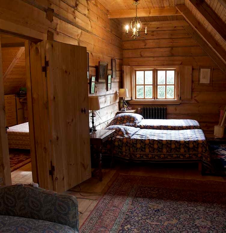Autres spécificités des maisons russes étaient les bancs répartis autour de la salle. Ces assises servaient aux paysans de s’assoir la journée ou d’y dormir la nuit. A l’origine ces maisons étaient réservées aux personnes âgées. Elle a ensuite été élargie pour accueillir plus de personnes, dont des familles nombreuses.